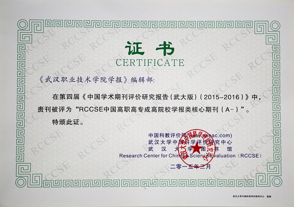 《武漢職業(yè)技術(shù)學院學報》被評為RCCSE中國高職高專成高院校學報類核心期刊行列