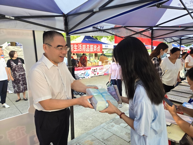 8日上午,學校黨委書記鄢烈洲親手遞上印著?;盏膶I(yè)書籍,并寄語新生“這是開啟你們專業(yè)探索的‘啟蒙之鑰’,愿你們在書頁間探尋學科真諦,找到心之所向,在武職扎根成長、積蓄力量”;學工處副處長夏挺帶來裝滿筆記本、中性筆的“文具大禮包”,“希望從入校第一天起,你們能以筆為媒、以本為鑒,養(yǎng)成踏實記錄、認真鉆研的治學態(tài)度”;旅游學院院長蔣永業(yè)送上輕便的羽毛球拍,“大學時光既要在知識殿堂‘讀萬卷書’,也要在運動場上‘強健體魄’,愿你們在揮拍間釋放活力,在運動中收獲健康與友誼。”