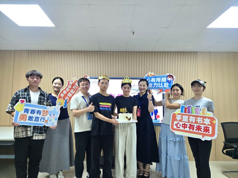 當夜幕降臨,厚德一站式學生社區(qū)的溫馨氛圍,將全天的迎新暖意推向高潮。學院在梳理新生信息時發(fā)現,2025級新生中有兩位學生恰逢9月8日生日,便悄悄籌備了一場“驚喜生日會”:定制蛋糕上“旅院歡迎你,生日快樂”的字樣格外醒目,五彩氣球纏繞著活動區(qū)的桌椅,志愿者們還提前練唱了“生日歌”。