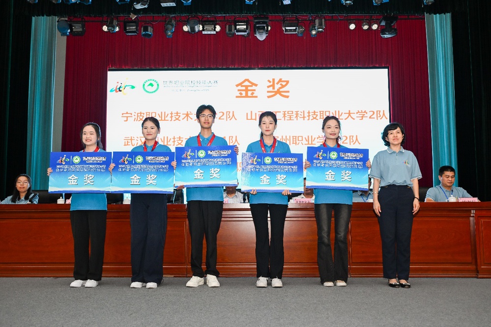 8月31日,2025年世界職業(yè)院校技能大賽總決賽爭奪賽物流與供應(yīng)鏈賽道(高職組)頒獎典禮現(xiàn)場,“武漢職業(yè)技術(shù)大學(xué)”的名稱格外醒目,參賽團(tuán)隊代表上臺接過象征榮譽的團(tuán)體金獎牌匾,這是智能商務(wù)學(xué)院繼2024 年獲供應(yīng)鏈管理賽項金獎后“再登頂”,為學(xué)校續(xù)寫技能大賽榮光 。