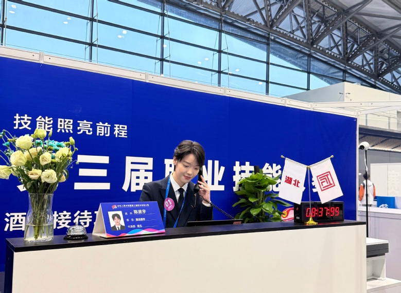 新聞網訊(通訊員王志毅)服務蘊溫度,誠于用心;國賽顯風采,功在篤行。9月23日,中華人民共和國第三屆職業(yè)技能大賽在鄭州落下帷幕,武漢職業(yè)技術大學旅游與航空服務學院2023級酒店管理與數字化運營專業(yè)學生陳波宇,以全國第七名的成績入選第48屆世界技能大賽酒店接待項目國家集訓隊,向著代表中國站上世界舞臺的目標又邁進了一步。