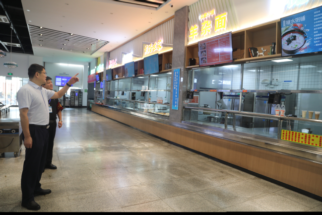 檢查組一行先后前往光谷校區(qū)監(jiān)控室(110指揮中心)、校園出入口、東三食堂、篤學(xué)社區(qū)及學(xué)??傊蛋嗍业戎攸c(diǎn)場(chǎng)所,逐項(xiàng)核查校園安全管理落實(shí)情況。在監(jiān)控室,何保華仔細(xì)查看視頻監(jiān)控覆蓋范圍與實(shí)時(shí)運(yùn)行狀態(tài),要求保衛(wèi)處緊盯重點(diǎn)區(qū)域,確保應(yīng)急響應(yīng)快速高效;在校園大門,他詳細(xì)詢問外來人員登記流程、車輛進(jìn)出管控措施,強(qiáng)調(diào)要筑牢校園安全“第一道防線”;在東三食堂,他仔細(xì)檢查食材儲(chǔ)存、餐具消毒及食品留樣管理等工作,叮囑食堂工作人員嚴(yán)格把控飲食安全,保障師生假期用餐品質(zhì);在總值班室,他認(rèn)真查閱值班記錄臺(tái)賬,要求值班人員嚴(yán)格執(zhí)行24小時(shí)在崗制度,確保各類突發(fā)情況及時(shí)處置、高效反饋。每到一處,何保華均認(rèn)真聽取點(diǎn)位負(fù)責(zé)人工作匯報(bào),針對(duì)檢查中發(fā)現(xiàn)的問題現(xiàn)場(chǎng)提出整改要求,對(duì)工作推進(jìn)中遇到的困難逐一協(xié)調(diào)解決,確保假期校園安全管理無死角、無漏洞。