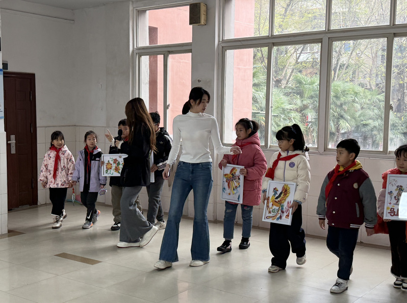 這場名為“錫三少年,衣起閃耀”的走秀,是江岸團(tuán)區(qū)委、區(qū)教育局“朋輩相伴 青春同行”志愿服務(wù)項(xiàng)目的生動(dòng)實(shí)踐。時(shí)尚與傳媒學(xué)院黨員教師杜恒、曹欣悅帶領(lǐng)時(shí)尚表演與傳播專業(yè)學(xué)生徐美昊、李奇隆、張梓軒、胡湘格,以“朋輩輔導(dǎo)員”身份進(jìn)校園,將專業(yè)走秀指導(dǎo)與小學(xué)生美術(shù)創(chuàng)作結(jié)合起來,打造了一堂從“創(chuàng)作”到“展示”的完整美育課。