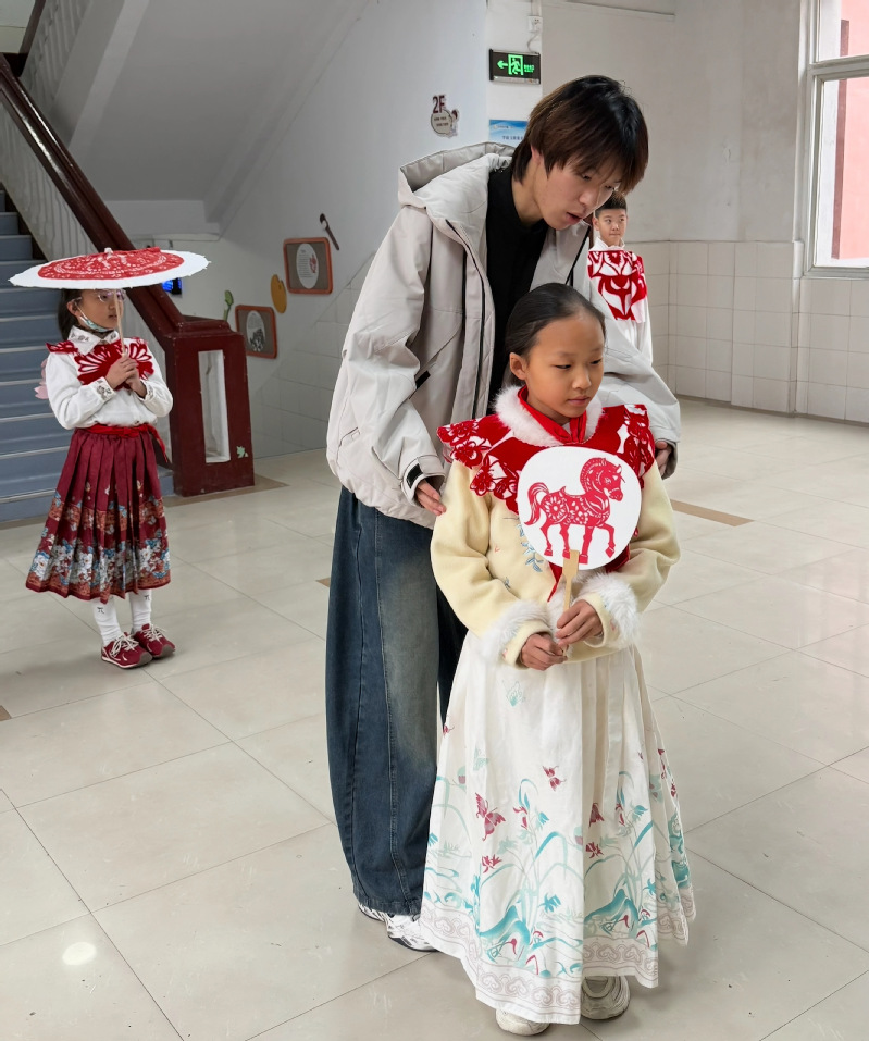 這種“雙重展示”的設(shè)計(jì),既尊重了孩子們的勞動(dòng)成果,更以“大帶小”的陪伴模式激發(fā)了他們的自豪感?;顒?dòng)中,孩子們掌握了基礎(chǔ)走秀技巧,同時(shí)在設(shè)計(jì)、制作、展示的全過程中真切體會(huì)到藝術(shù)表達(dá)的樂趣。